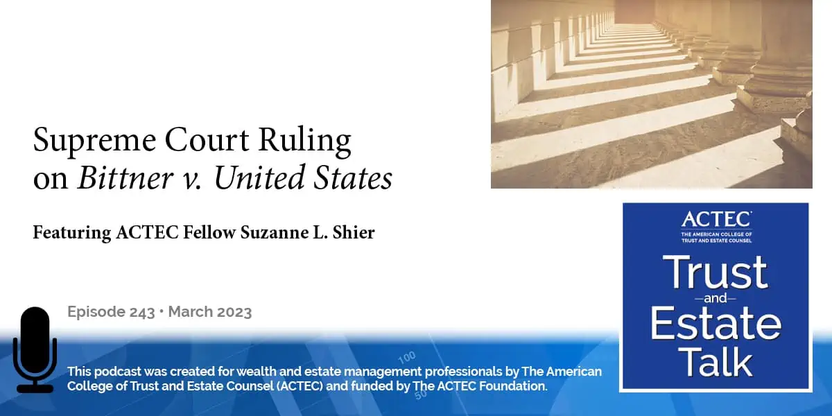 “Supreme Court Rules on Alexandru Bittner v. United States,” that’s the subject of today’s ACTEC Trust and Estate Talk.